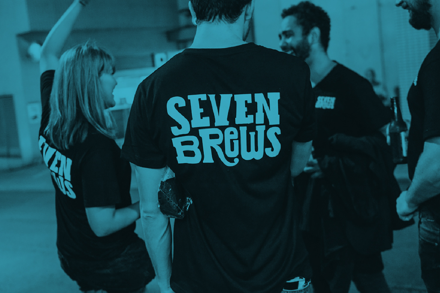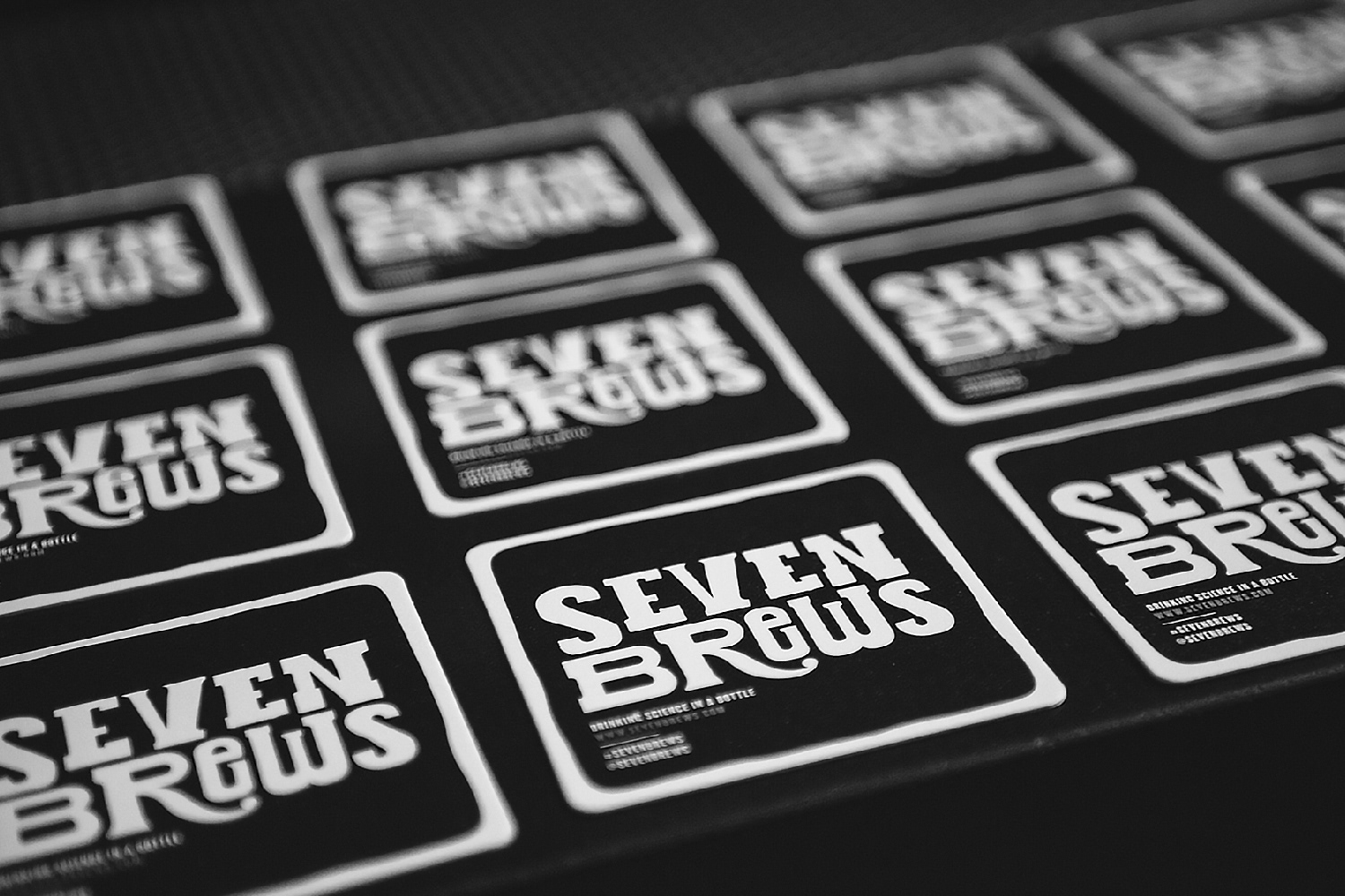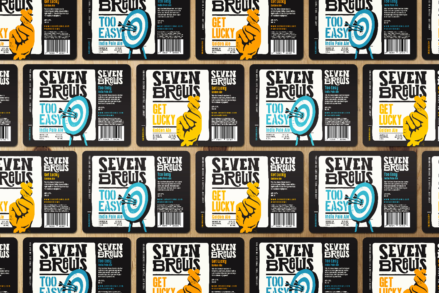 Branding and label development for Seven Brews. Seven Brews is Hong Kong based beer company that does all their brewing in California. They wanted a fun energetic logo and label to match while staying away from all the craft brew design cliches.