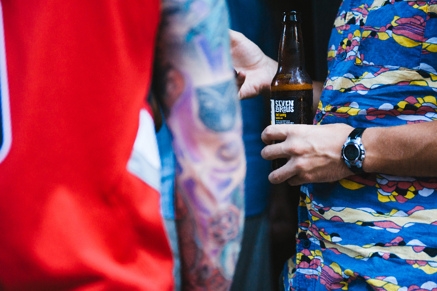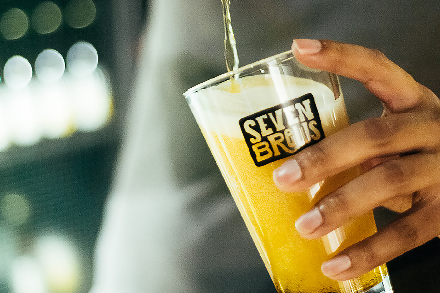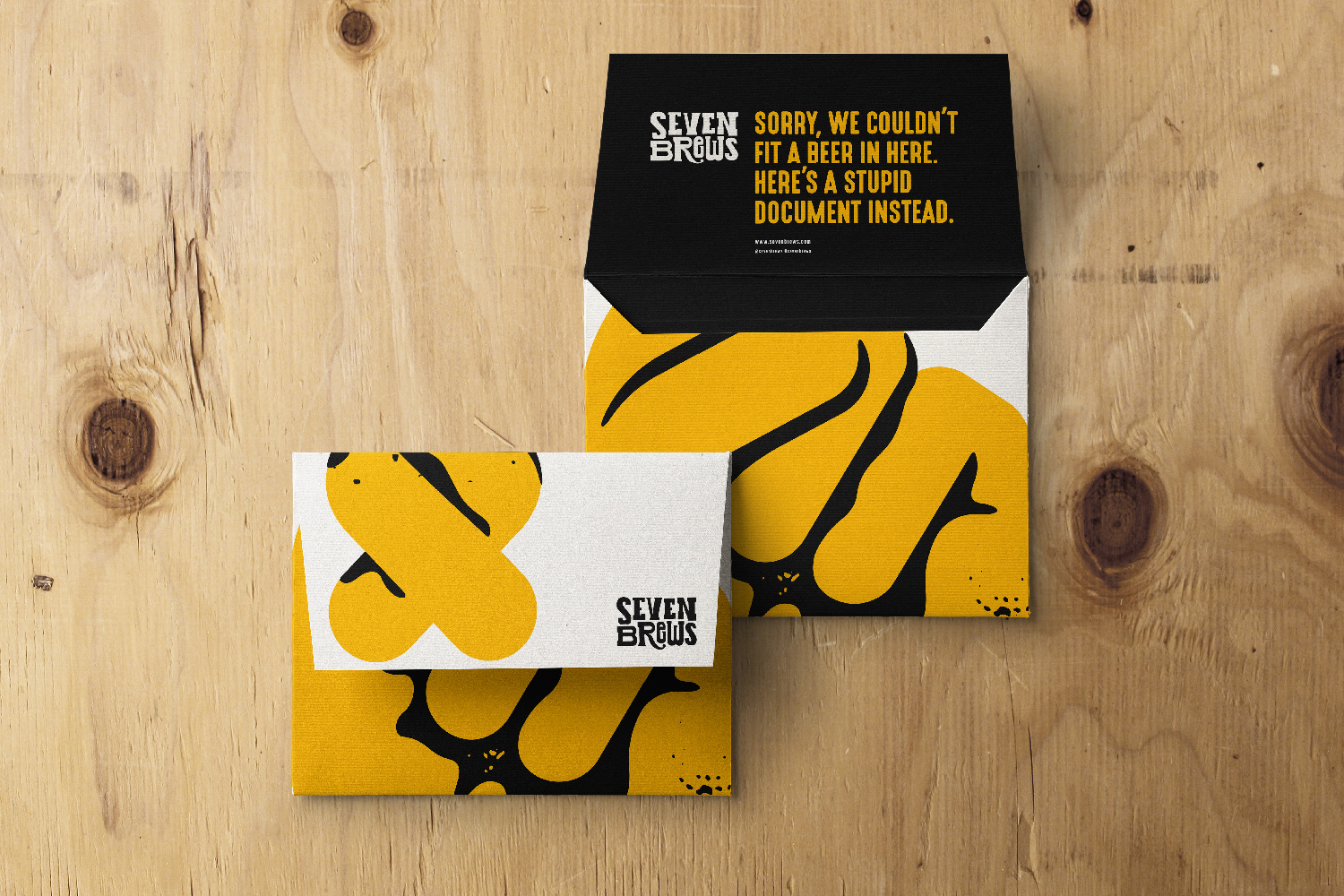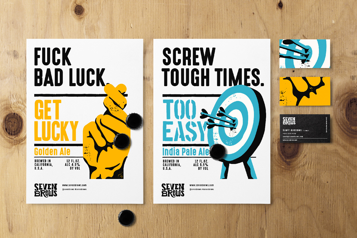 Branding and label development for Seven Brews. Seven Brews is Hong Kong based beer company that does all their brewing in California. They wanted a fun energetic logo and label to match while staying away from all the craft brew design cliches.